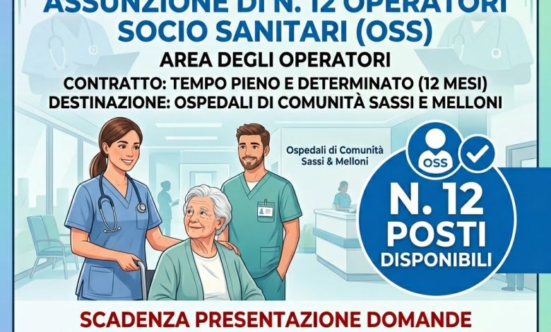 AVVISO PUBBLICO, PER TITOLI E COLLOQUIO, PER LA COPERTURA DI N. 12 POSTI NEL PROFILO DI OPERATORE SOCIO SANITARIO – AREA DEGLI OPERATORI CON CONTRATTO DI LAVORO A TEMPO PIENO E DETERMINATO DELLA DURATA DI DODICI MESI , DA ASSEGNARE AGLI OSPEDALI DI COMUNITÀ SASSI E MELLONI.