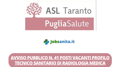 Avviso pubblico n. 41 posti profilo Tecnico sanitario di radiologia medica – ASL Taranto