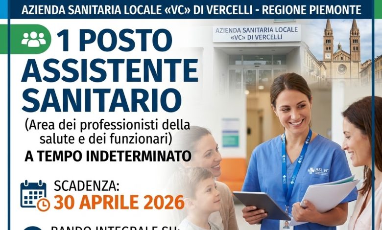 Concorso ASL Vercelli per Assistente Sanitario a Tempo Indeterminato