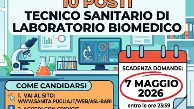 - Figura ricercata: Tecnico sanitario di laboratorio biomedico (Area dei professionisti della salute e dei funzionari – ruolo sanitario).