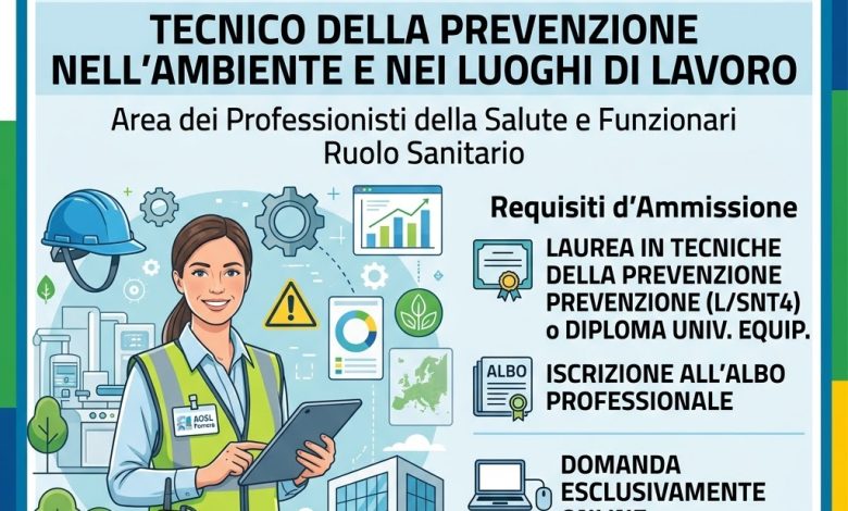 - Titolo di studio: Laurea in Tecniche della Prevenzione nell’Ambiente e nei Luoghi di Lavoro (Classe L/SNT4), oppure Diploma Universitario equiparato (ex D.Lgs. 502/92), o titoli equipollenti.